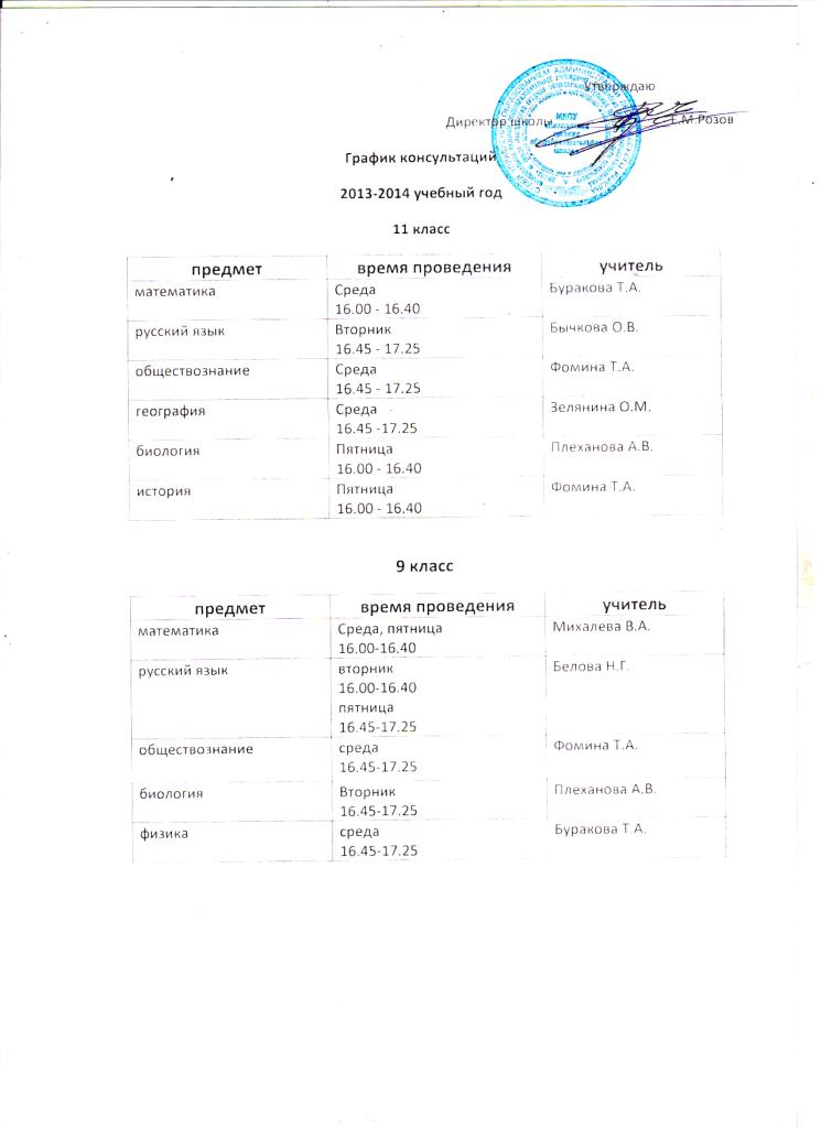 График проведения консультаций по предметам ЕГЭ